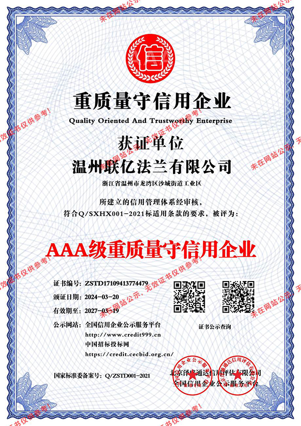AAA級(jí)重質(zhì)量守信用企業(yè)